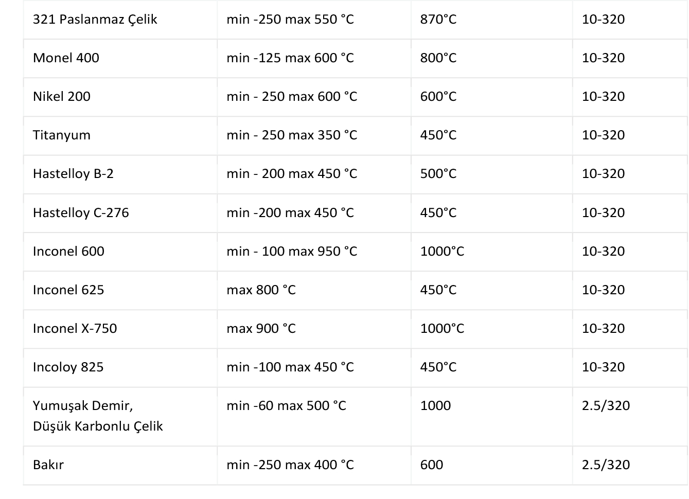 Alaşımlar Borulu eşanjör ürünleri, nikel alaşımları, paslanmaz çelikler, dubleks, süper dubleks olmak üzere aşağıdaki malzemelerden dikişsiz, kaynaklı veya kaynaklı yeniden çekilmiş borular olarak üretilmektedir.